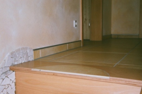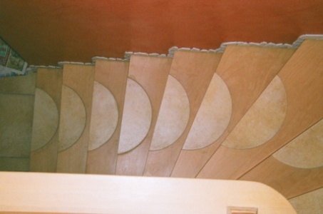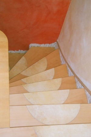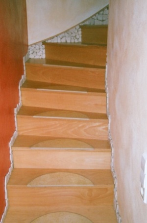 Holzstufen ausgefräst mit eingelassenen Tritten aus Fliesen